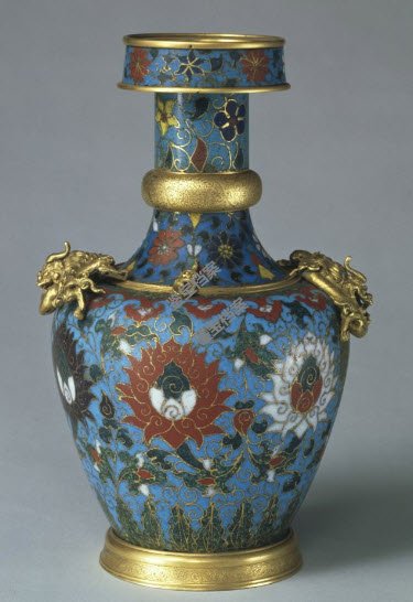 此瓶的珐琅质地和以缠枝莲花纹装饰的特点,在目前所见具确切纪年款识的掐丝珐琅器中尚未有所见,应为元代之作品。