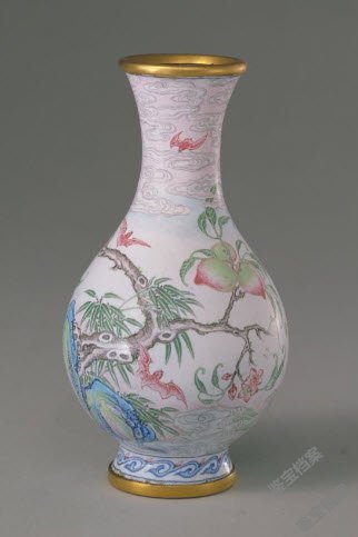 藏品名称:清康熙画珐琅桃蝠纹瓶