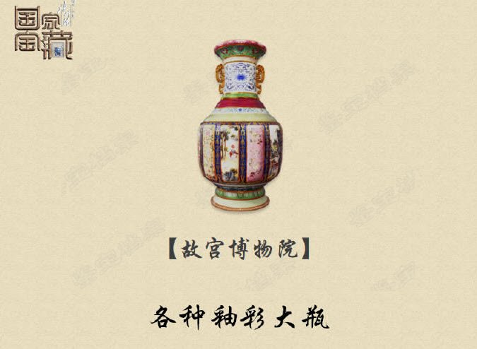 瓷母的全称叫各种釉彩大瓶,别看人家只是一个瓶子,但是上面却集结了历朝历代最名贵的釉彩,一共17种。如果不总结称是“各种釉彩”,准确的说,它应该叫清乾隆青花五彩斗彩金彩珐琅彩红釉粉青釉霁蓝釉松石绿釉窑变釉仿官釉仿哥釉仿汝釉酱色釉三阳开泰博古九鼎吉庆有余丹凤朝阳太平有象仙山琼阁蟠螭纹蝙蝠纹花卉纹如意纹万字纹灵芝纹螭耳大瓶。