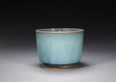 藏品名称:北宋/金钧窑天蓝釉三足筒式炉。