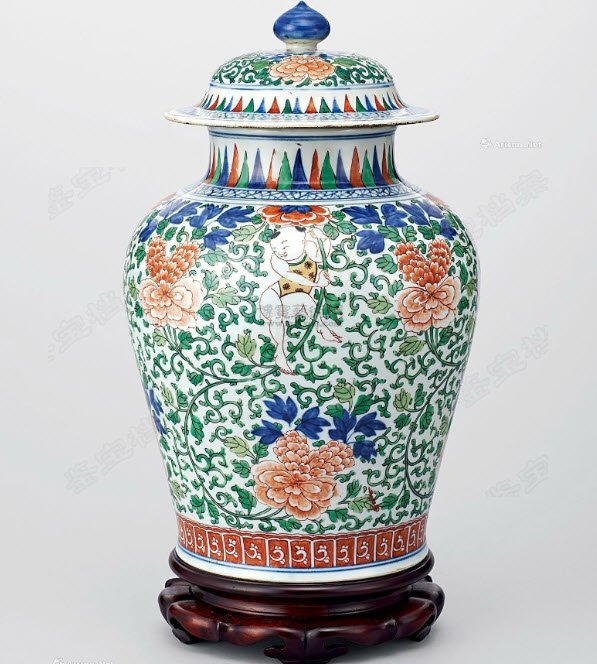 清康熙 五彩人物故事纹将军罐(成交价:220,000)