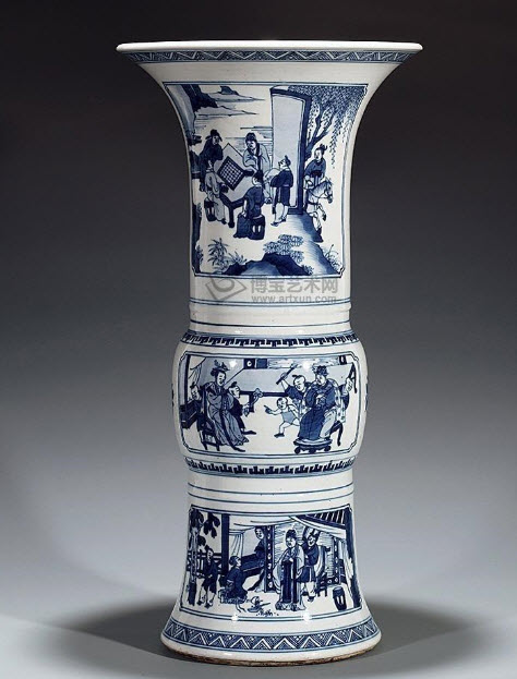 图:清康熙青花人物花孤