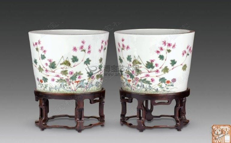 粉彩花卉草虫纹套盆 (一对)(估价:36,000)。