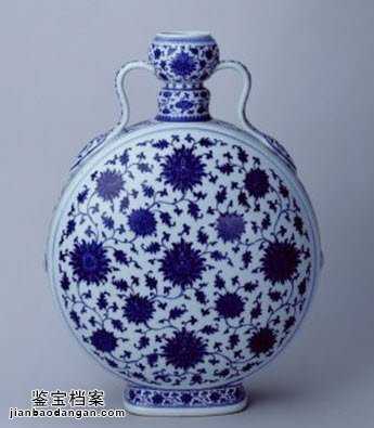 故宫藏清乾隆青花缠枝莲纹如意耳扁壶