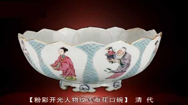 清粉彩开光人物纹莲瓣花口碗,这种碗不太实用,更多的是用来供奉,摆设。
