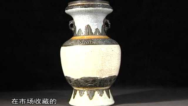 藏品5:哥窑罐。上面是所谓的“紫口铁足”十分夸张,这种装饰在清代中期出现,也叫铁花装饰,从色釉来看,从下往上是黄白青白,开片来看属于乾隆时期,瓷器底部是豆腐章款,可以看出是清中晚期的东西。