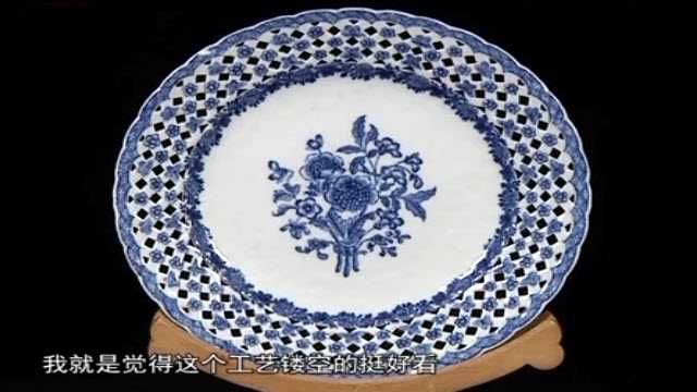 藏品2:镂空青花盘。这是清晚期来样加工,为外国人加工的盘子。