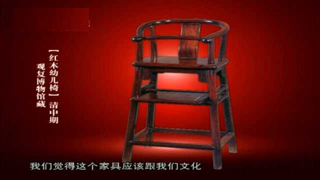 本期主题宝物:清中期红木幼儿椅。底下的踏板是活动的,可以抽出来,前面的枨是可以取下来的。