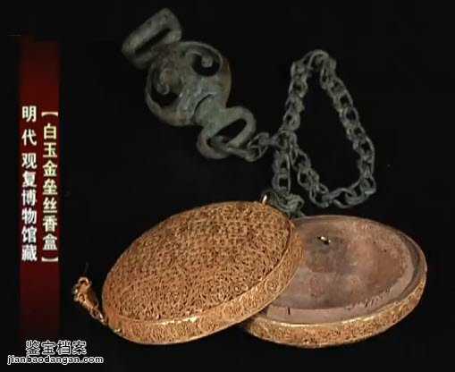 本期主题宝物:明代白玉金垒丝香盒。这个做工非常精细。