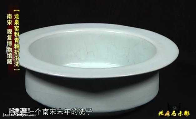 藏品1:南宋龙泉窑粉青釉折沿洗。洗分两类,一类为文房笔洗、另一类是洗脸洗手的,后来文明俗称脸盆。