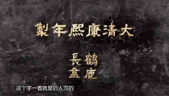 主要的材质是竹编,框架结构是用杉木做的。里面是红漆的,这件东西非常迷惑人的是底下写了“大清康熙年制”,稍微明白一点的人一看就知道这字一定是后人写的:首先金色非常亮、不切实际地亮;然后是字写的比较烂。