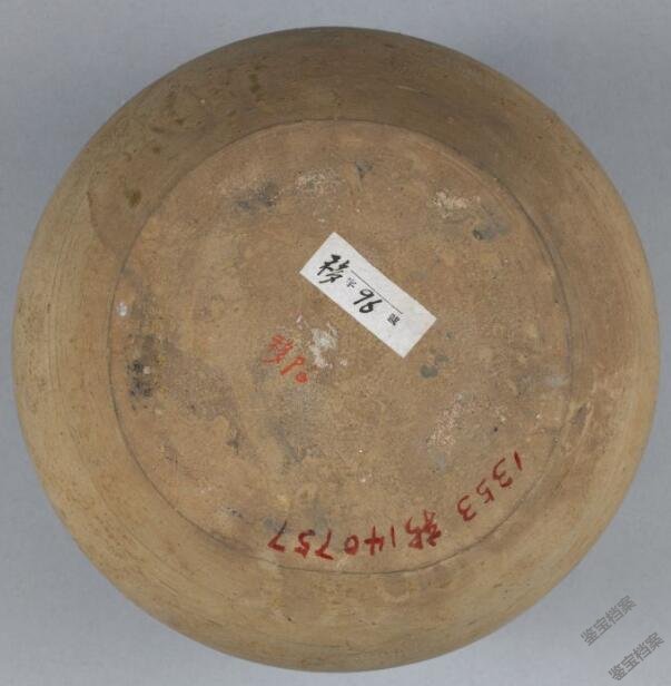 图片内容:战国原始瓷刻竖条纹双系罐底部