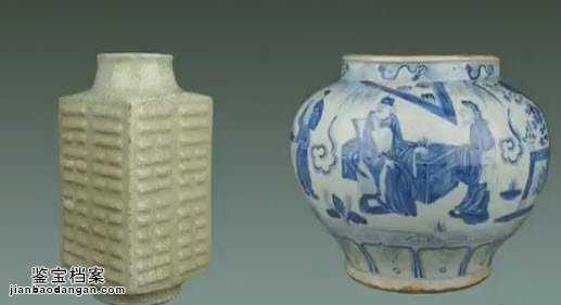 第1轮宝物:清晚期仿哥釉八卦纹琮式瓶,元青花人物纹罐