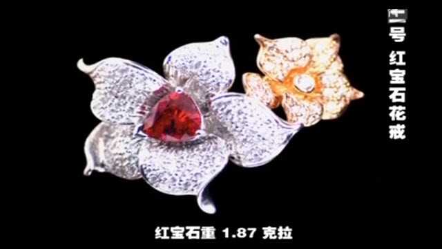 二号是红宝石花戒,是鸽血天然红宝石戒指
