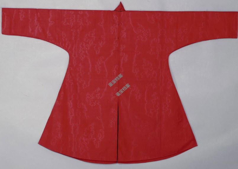 藏品名称:清康熙大红水波纹羽纱单雨衣